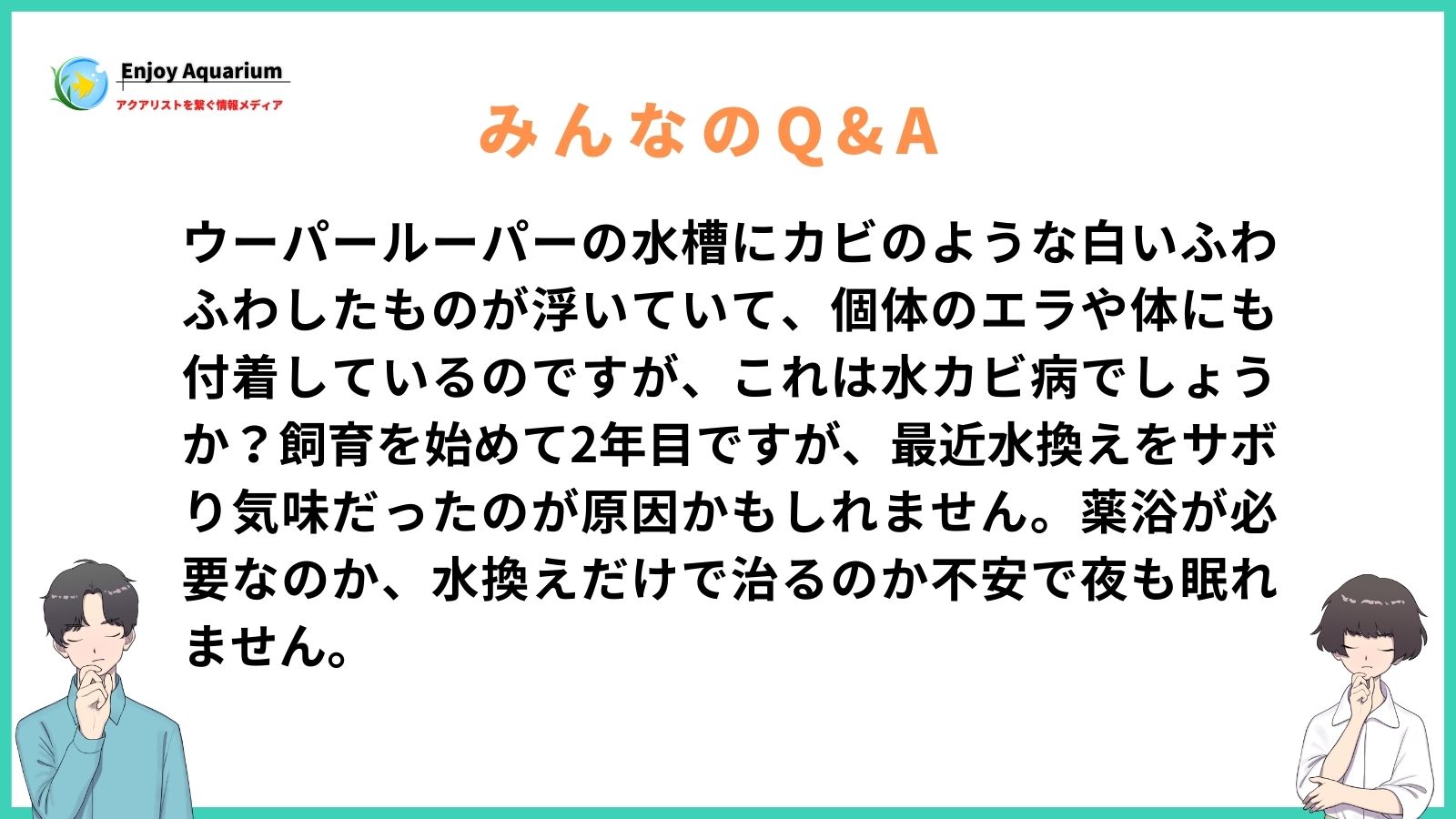 ウーパールーパーの飼育において、水槽内に発生するカビは主に水カビ病の原因となる真菌です。これは水温が20度以下に下がる時期や、水質の悪化、食べ残しの放置が原因で発生しやすくなります。個体の体に白い綿のようなものが付着している場合は、速やかな対処が必要です。